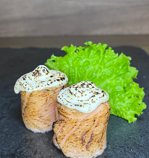 | Enrolado de salmão Grelhado,com arroz, Creem Cheese e Gergelim. |