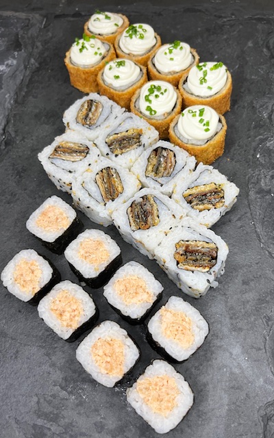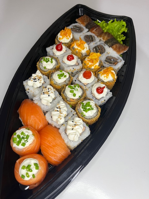 | 8 Hot Philadelfia, 8 Hossomaki Salmão, 8 Uramaki Salmão Grelhado, 3 Niguiri Salmão,3 Sashimi. (30 Peças) |